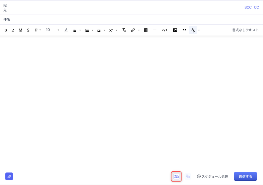 メール作成画面で右下の「Zia」のアイコンをクリック。