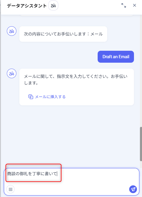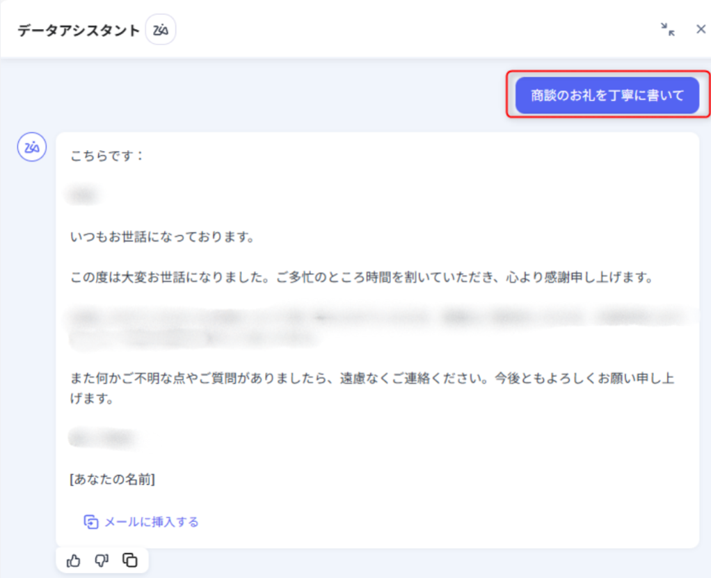 Ziaがメールの下書きを作成してくれるので、メールに挿入して微修正を加えれば送信できます。