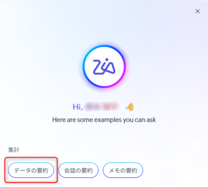 顧客情報のメモ作成欄にある「Zia」アイコンをクリック。
