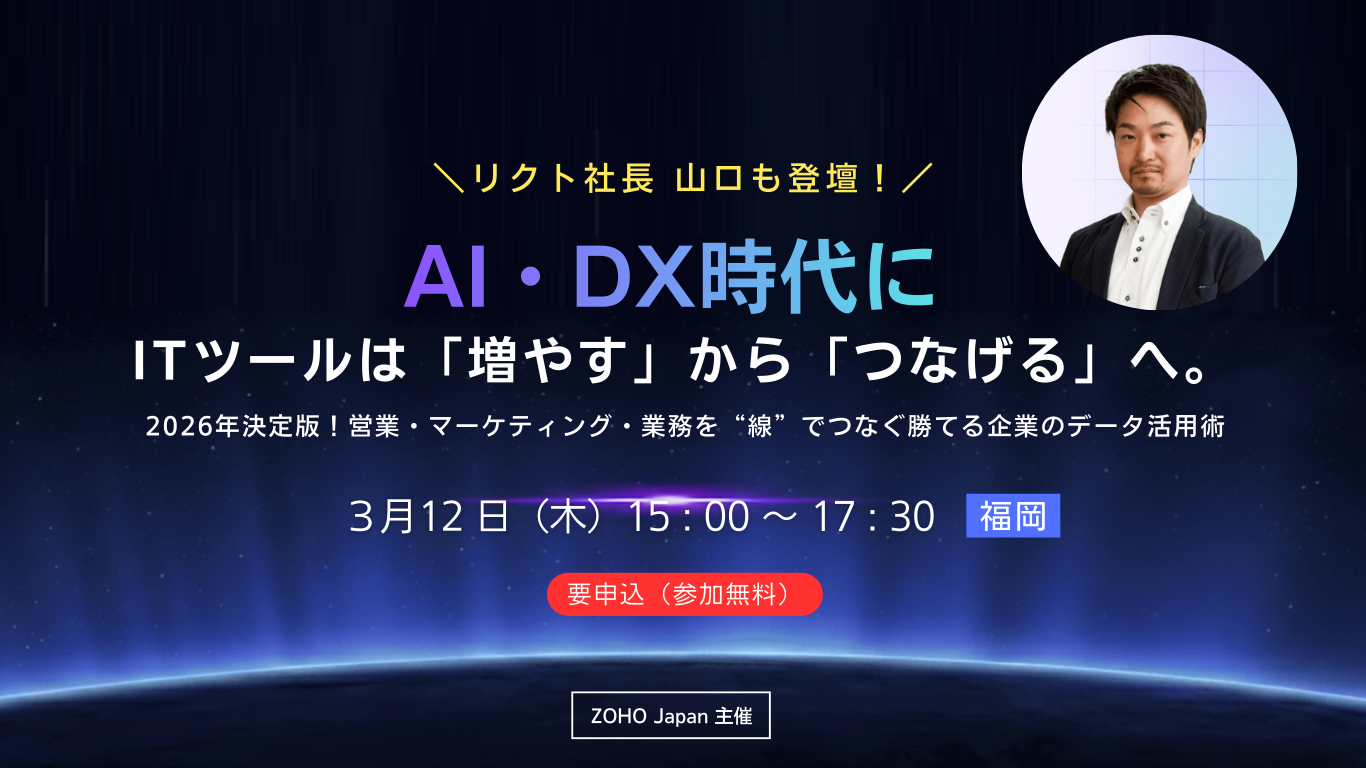 これからの時代、AIという強力なエンジンを搭載した「Zoho」のような統合型クラウドツールを活用し、集客から商談、アフターフォローまでをシームレス(縫い目がない状態)に連携させることが、競合優位性を築くための鍵となります。